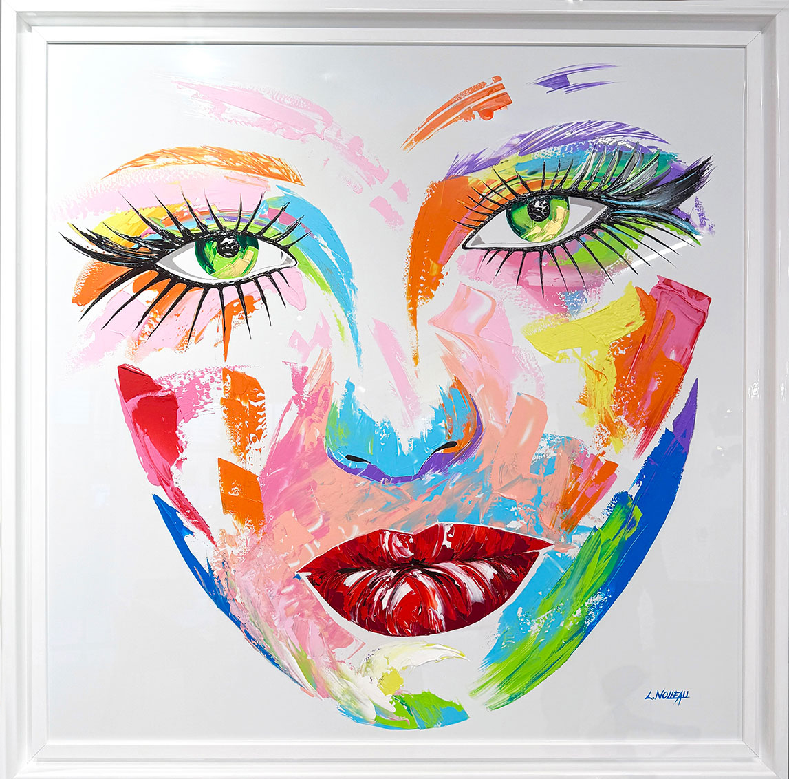 L’huile, une révélation, matière mémoire qui garde trace de chaque geste de l’artiste qui incise, découpe, caresse, racle la peinture sur la toile. Armée de son couteau, Laurence sculpte avec énergie ses visages pour nous livrer des œuvres percutantes et graphiques. Les couleurs sont vives et intenses, les regards hypnotiques, les portraits saisissants : l’expressionisme prend ici tout son sens.