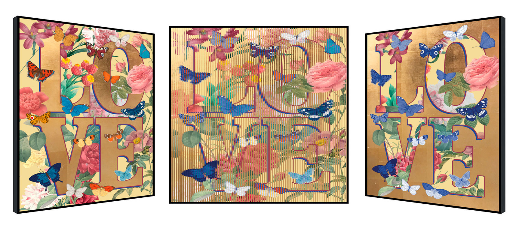 Le principe du Triple réside dans trois images, une centrale et deux latérales. Les vues latérales sont créées par des lamelles insérées à la perpendiculaire de l’image centrale. Elles offrent deux images distinctes, de part et d’autre, à 45°. Cette technique permet des variations des perceptions dans le mouvement, et assure une vision évidente de l’image centrale.