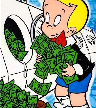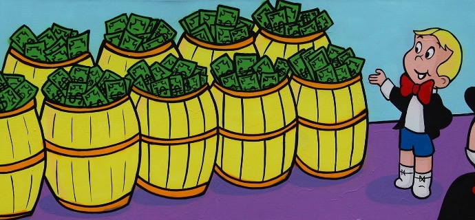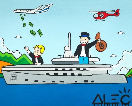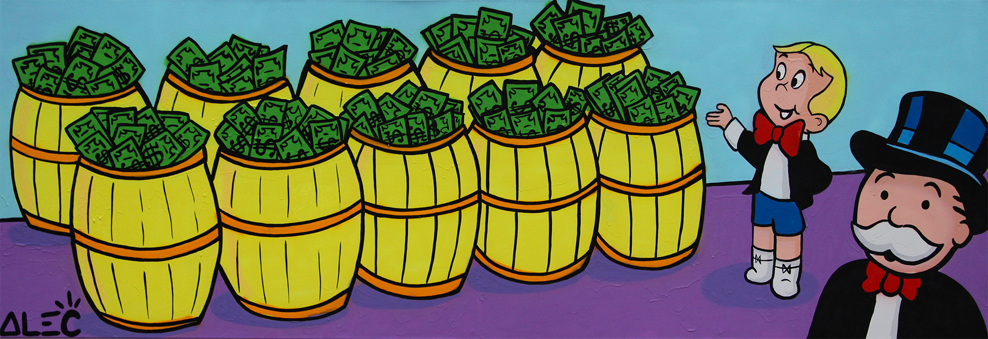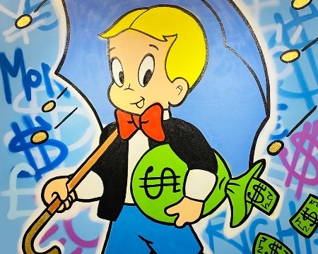 $ Team Wall St. Gold Bull Purple $ Bags Painting